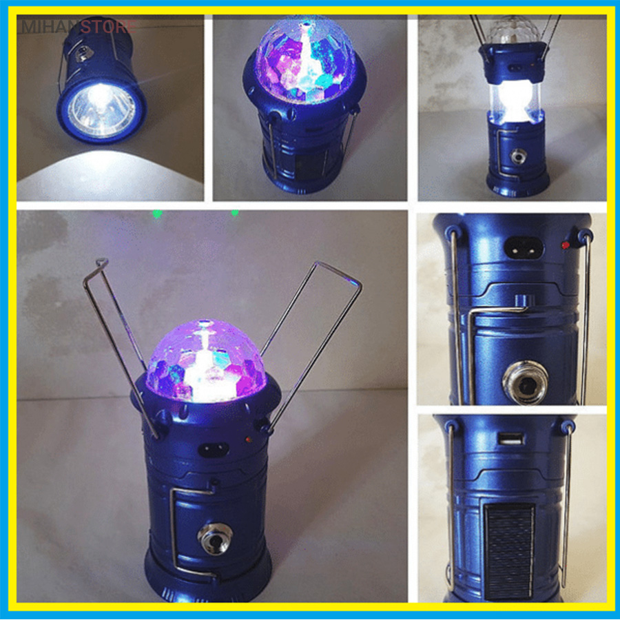 چراغ کمپینگ شارژی رقص نور دار قابل حمل به همراه رقص نور، محصولی با طراحی نوین و بسیار کاربردی است . این چراغ را میتوان تلفیقی از فانوس های قدیمی و چراغ قوه های جدید و رقص نور مدرن دانست .چراغ کمپینگ شارژی رقص نور دار، در واقع یک ابزار چند کاره است و میتواند به سادگی نیاز های شما در رابطه با نور را در مسافرت، پیک نیک و جشن های خانواگی و مواردی نظیر آن فراهم کند . شما میتوانید با کشیدن سر چراغ به سمت بالا (کشویی)، فانوس را روشن کنید و از آن برای تأمین نور محیط استفاده نمایید. چراغ اصلی فانوس دارای 6 چراغ ال ای دی است که در کنار هم نور قوه ای را ایجاد میکنید. همچنین در بالای این فانوس یک شیشه منشوری وجود دارد که هنگام روشن کردن با چرخش و نور پردازی فضای دل انگیزی را برای شما به وجود میآورد. این محصول خرید خوبی برای استفاده در کمپینگ و طبیعتگردی خواهد بود.ورودی برق روی دستگاه بوسیله سیم همراه به برق وصل شده و چراغ را شارژ مینماید تا بتوانید به صورت بی سیم از چراغ استفاده نمایید.خروجی یو اس بی روی دستگاه نیز برای شارژ تلفن همراه شما تعبیه شده است و برای شارژ کردن گوشی موبایلتان است.جنس بدنهی این محصول سبک و کم حجم، جنس بدنه از ABS + PC، محکم و بادوام است که بهسادگی آسیب نمیبیند و این امکان را به شما میدهد تا مدتزمان زیادی بهصورت مستمر از آن استفاده کنید. این محصول وزن قابلقبولی دارد و شما میتوانید بهراحتی آن را حمل کنید و در سفرها به همراه داشته باشید.